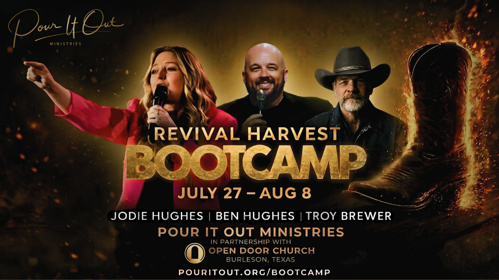 Pour It Out Ministries was founded by Ben & Jodie Hughes in Australia in 2009 following a radical and powerful encounter with the Lord. They were given an urgent and distinct mandate for Revival and the Harvest and to “pour out” the oil of His presence and power in the nations. In 2017 God spoke to them very clearly that He was sending them as missionaries to the United States with a call to “put their shoulders to the plow for Revival in America”. Since then they have travelled extensively across the USA, (and the nations) preaching the gospel and lighting fires of Revival in churches, open fields, on the streets, beaches, parks, in 40 states and counting.